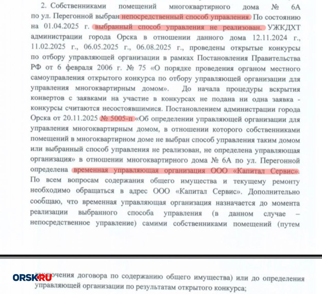Путаница в управлении домом тоже продолжается – жители все ломают голову над тем, кто несёт ответственность за оказание всех жилищно коммунальных услуг. Как нам стало известно из ответа на официальный запрос от УЖКДХТ администрации Орска, дом №6А временно обслуживала УК «Капитал Сервис».