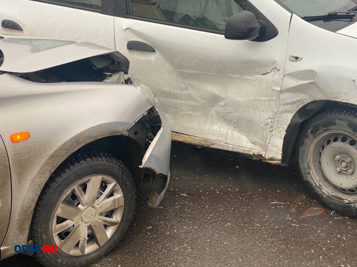 На перекрёстке в Орске столкнулись сразу несколько автомобилей