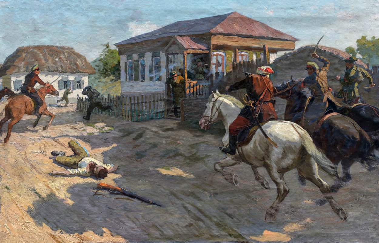 Суббота – последний день работы выставки, посвященной 55-летию Орского отделения «Союза художников России» (6+). У нашего города много имен, которыми стоит гордиться, и одно из них - Николай Ерохин, художник, особенно любивший исторический жанр. В своей картине «Разгром Белых в с. Хабарном» он мастерски показывает драму Гражданской войны. Напряжение боя передано через динамику всадников, огненные вспышки выстрелов и суровый пейзаж. Каждый четкий силуэт на полотне – часть этой эпохальной битвы.